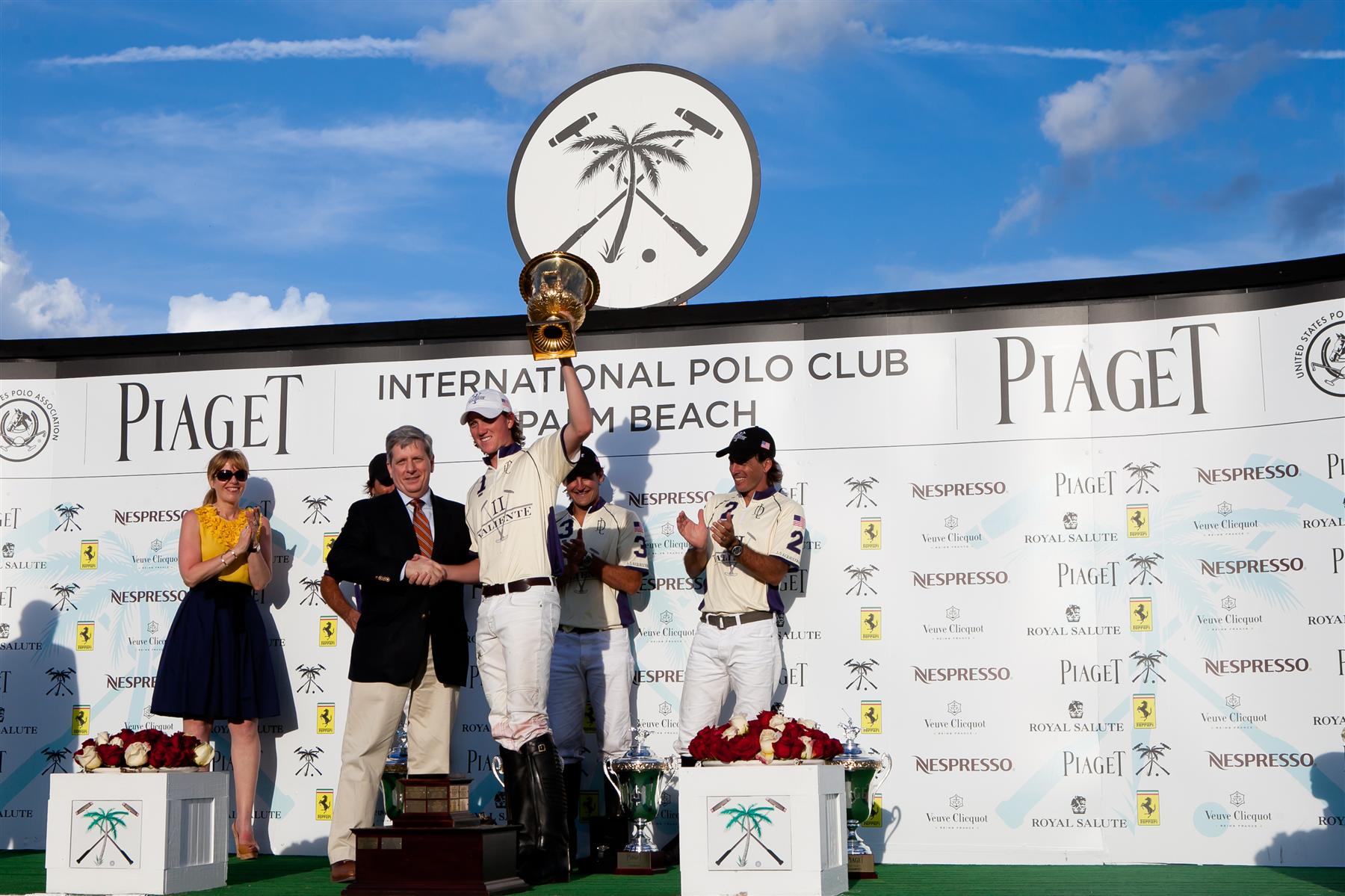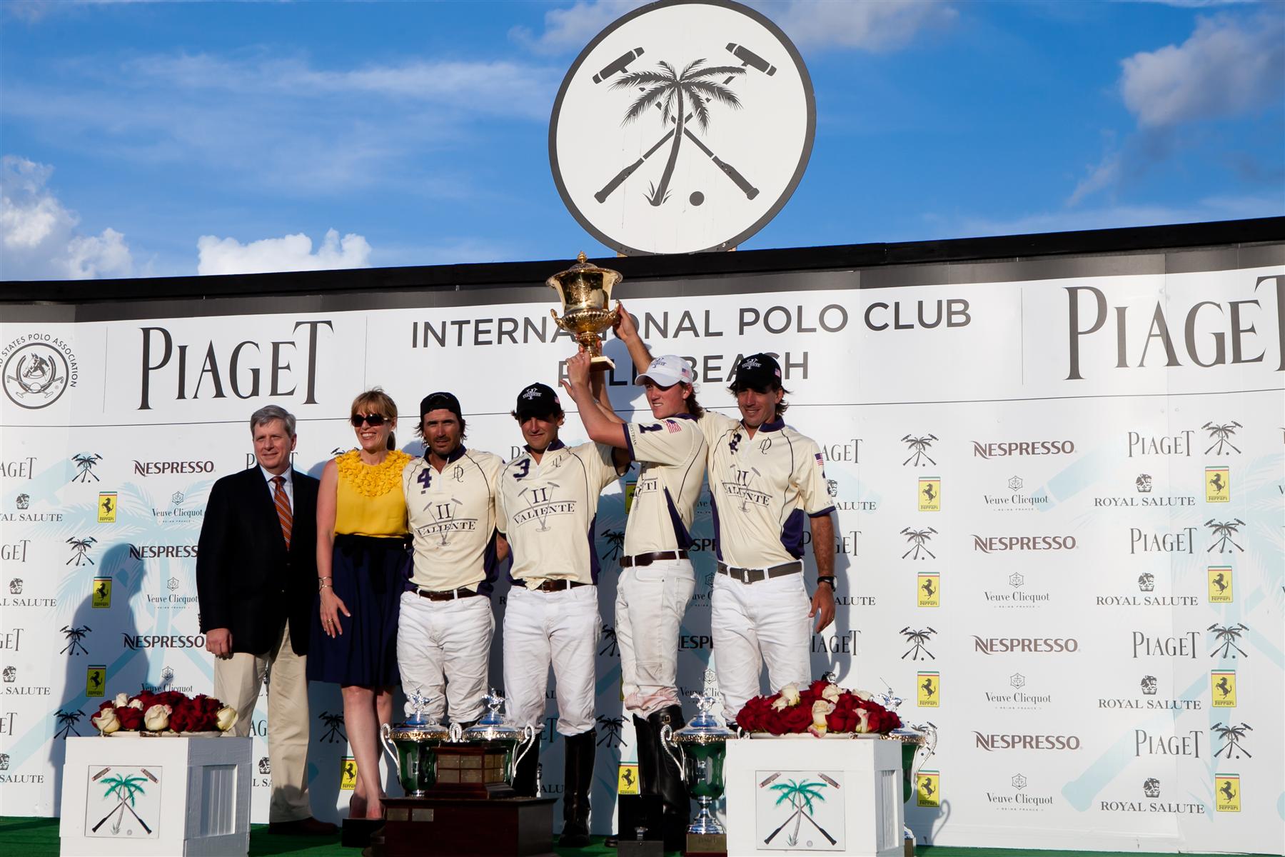 Robert Jornayvaz and his Valiente II teammates took revenge on their loss in the C. V. Whitney Cup finals earlier this month by scoring an 11-9 win over his father’s Valiente I foursome in the finals of the 2012 USPA Piaget Gold Cup at the International Polo Club in Wellington. The second leg of America’s Triple Crown of Polo came with quite a scare, however. After scoring six goals and leading his Valiente II team to a 10-8 lead over Valiente I, Adolfo Cambiaso was struck in the hand with the hard plastic ball and forced to leave the game. Juan Martin Nero, Cambiaso’s Argentine Open Championship teammate, took his place for the remainder of the contest in the 11-9 Valiente II victory.